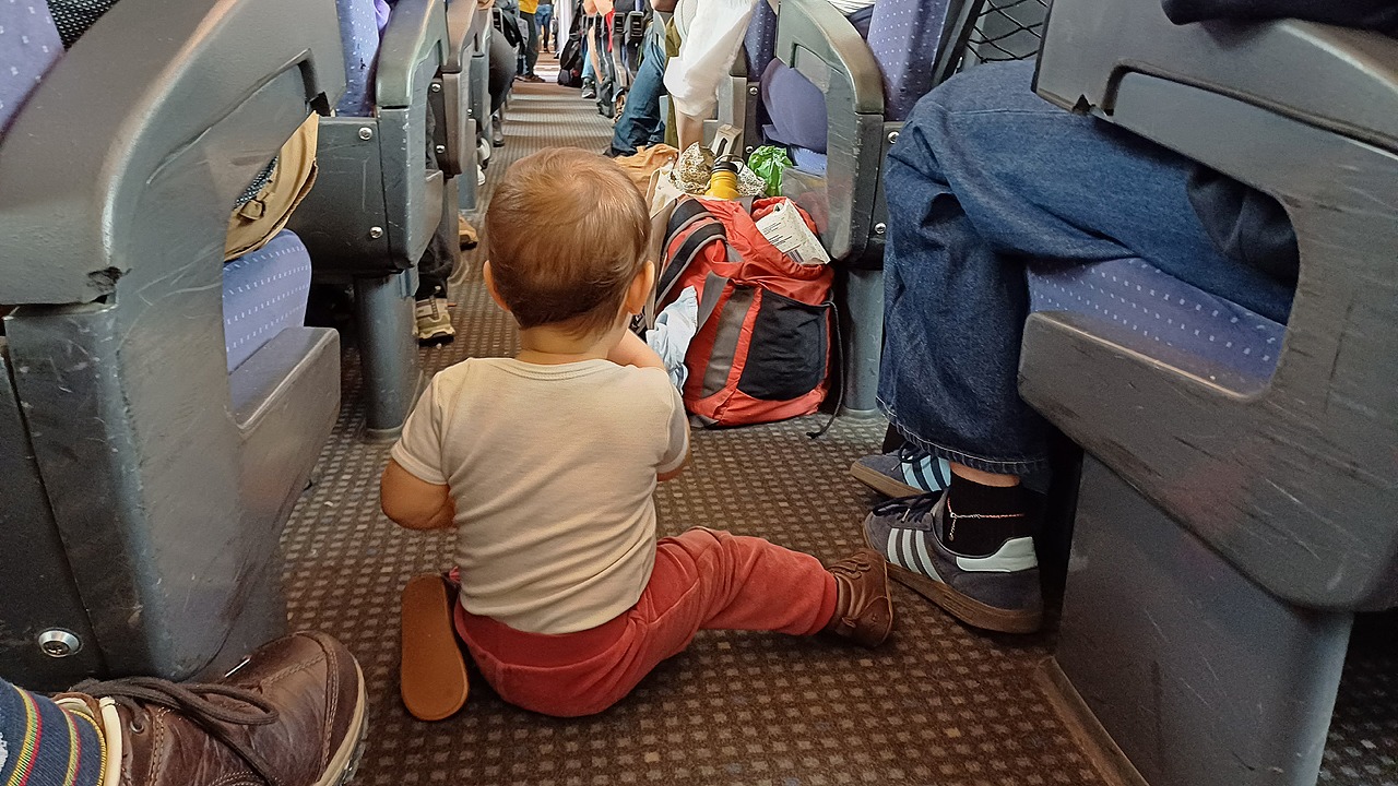 Vær opmærksom når du reserverer pladser. Der er i mange tog separate børneområder med plads til både små og lidt større børn, uden at børnene – som i dette fyldte EC-tog til København – behøver at muntre sig i gangen.